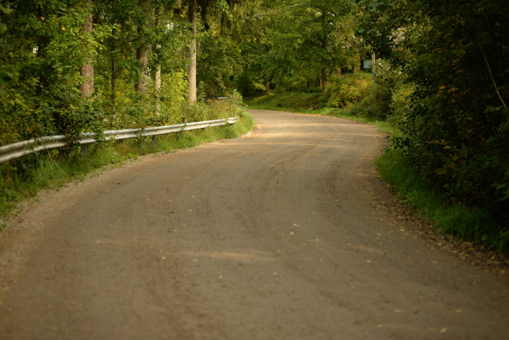 Mutta ihan nappiin tämä suoritus ei vielä mennyt: tien poikittaisprofiilia ei ole muotoiltu kuperaksi. Tämä on olennaista tien kuivatuksen kannalta. Kun tie on muotoiltu oikein, kovakaan sade ei pääse muodostamaan lammikoita tai alamäissä tietä myöten virtaavia tulvapuroja. Kuperalta tieprofiililta sadevesi valuu tien reunoille, kuten sen kuuluisan hanhen selästä.